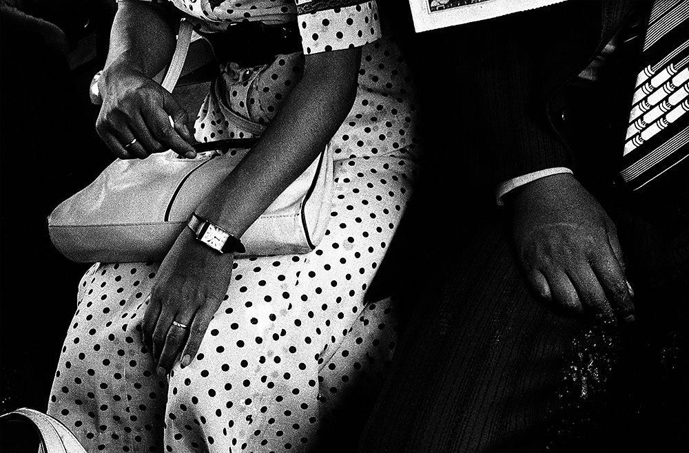 Moriyama's adherence to “sectionalization/fragmentation” was brought home to me afresh when I saw the “Labyrinth” exhibition held at the BLD Gallery in Ginza, Tokyo from September to November 2012. At this exhibition, which featured a selection of the contact prints Moriyama shot between the 1960s and the 2000s that had simply been enlarged for display purposes, the way he looks at his subjects stood out more clearly than ever. The large number of close-ups is probably due to the fact that his gaze is drawn not so much to the whole but to details. Moreover, in most cases he releases the shutter any number of times without pausing. Sometimes, as is the case with that memorable series of photographs of his girlfriend's legs in fishnet stockings (1986), he even uses up several rolls of film shooting the same subject from various different angles.