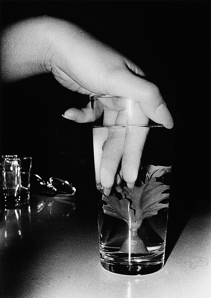 Here, I would like to reconsider the distinguishing characteristics of Moriyama's photographic world from three angles: namely, “dampness,” “a floating feeling,” and “sectionalization/fragmentation.” When I look at Moriyama's photographs, I feel as if I am wrapped in the kind of clammy, heavy air tinged with dampness that we experience during the rainy season. This is particularly the case with the close-ups of lips that he enjoys shooting, but there are many other photographs in which a glistening layer of water seems to permeate the entire surface. The hair and flora that appear often in his photographs, almost as if they are an obsession, also sometimes look as if they are streaming in water.