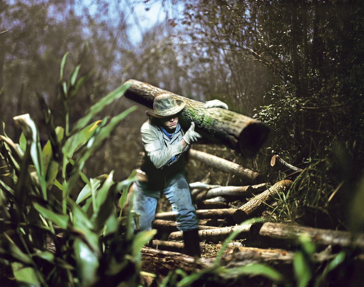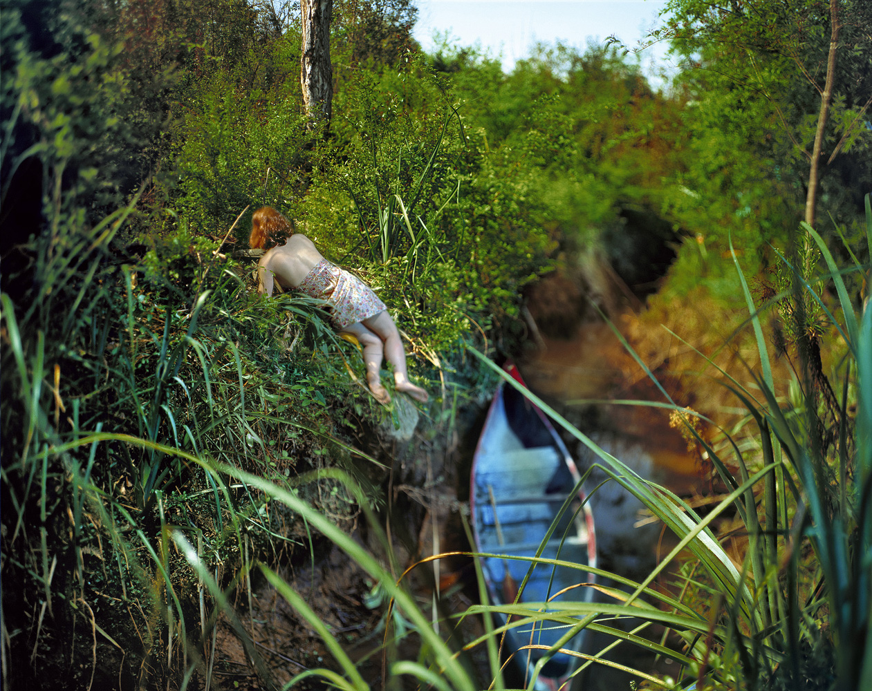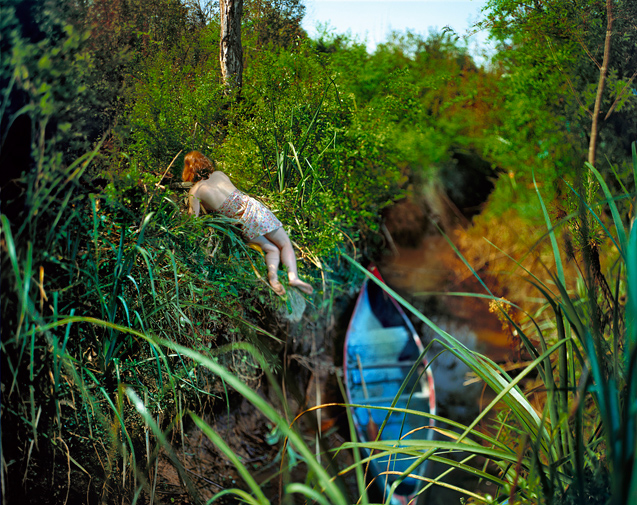具体的に作品を見てみよう。「High Tide」は、前出のパラナ川デルタ地帯に存在する小さな島々に住む人達のコミュニティをテーマにした4年間の長期プロジェクトである。彼らの多くは川を中心とした生活を送り、外の世界とコミュニケーションをする手段を持たない。彼らの生活をコントロールするのは、潮の満ち引きである。満潮時には、ボートを使って小さな川や島の間を移動し倒れた材木を集め、干潮時には、イグサを刈って集めるといった具合だ。チャスキエルベルグは潮の満ち欠けと共に生きる事を運命づけられたデルタ地帯の独特な雰囲気を、「THE ISLANDERS」の作品に象徴されるように神秘的な視覚的表現を用いる事で見事にとらえている。と同時に、「High Tide」の作品は、パラナ川デルタに住む人々の生活を伝えるドキュメンタリー作品としても成立している。現実とフィクションが融合された事で、時間という概念から切り離されたタイムレスな作品が生み出されているともいえよう。