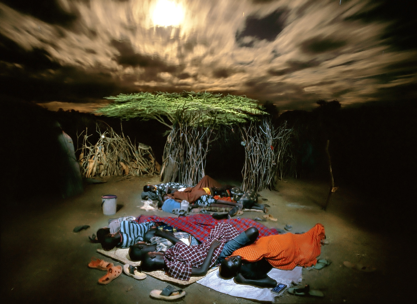 In his new work Turkana, Chaskielberg rises to an even greater challenge. This series, shot as a project for international aid organization Oxfam, which supports people trying to overcome poverty, portrays the inhabitants of Kenya's Turkana, one of the most drought-affected parts of Africa and on the brink of famine. When it comes to documentary photographs on a weighty theme of this sort, the images that generally spring to mind are those of starving people beneath a blazing sun. But looking at the Turkana photos we perceive something totally different: the joy of life radiating from boys drawing water from a well, peace from families sleeping under the moon, and from the sight of people standing under a starry sky, hope. In this work, through nighttime long exposure photography employing light from the moon plus multiple other sources, Chaskielberg can be said to have literally shown people staring famine in the face in a new light. What this work demonstrates to us is that no matter how cruel the circumstances, people do not necessarily languish in despair. Also in this series, the stunning visual language used by Chaskielberg serves perfectly to communicate the ideas he wants to convey.